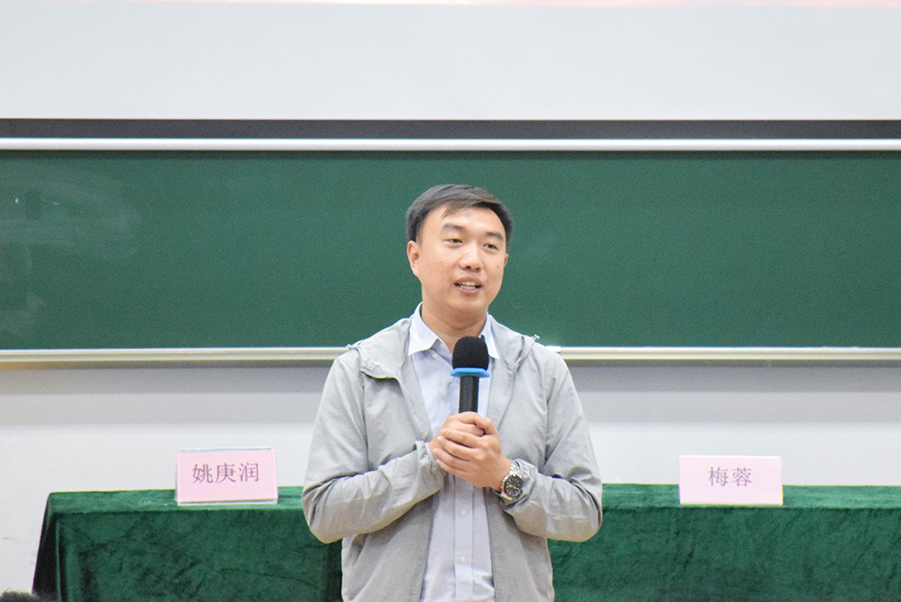 讲座伊始,由党支部优秀员工代表朱国华发言,她向大家介绍了公司党支部的日常工作,并仔细讲解了中国共产党发展党员流程。团支部优秀员工代表李涵哲在发言中分别介绍了其所在班级团支部取得的优秀成绩、特色活动以及支部的各项建设,并分享了她成为团支书后所收获的宝贵经历。随后,学术研讨类员工代表姚庚润介绍了适合信院学子参与的竞赛以及考取证书类别,他建议同学们以做项目为导向去学习,提高学习效率,丰富知识,开拓视野。优秀干部类员工代表黎继铠就如何做好一名员工干部做出发言,他指出员工干部在保持良好的工作态度之外,更要学会换位思考,把简单的事情做到极致,让优秀成为一种习惯。积极生活类员工代表梅蓉分享了自己的工作日程以及学习对于老员工的重要性,她鼓励同学们多参与活动,在丰富课余生活的同时,感受活力四射的大公司园氛围。志愿服务类员工代表吴雁敏表明了做志愿与学习两不误的观点,并建议同学们要找准大学目标,劳逸结合,不断向目标前行。在观众提问环节中,同学们就自身遇到的学业、交际问题向员工代表们提问,员工代表们耐心的解答令在场同学受益良多。关俊明书记为六位优秀员工代表颁发纪念品后,对本次讲座致辞。他在讲话中指出,同学们要以未来想要应聘的目标岗位为标准衡量现在的努力程度,制定计划,标明方向,他还建议同学们每天预留一个小时学习,为实现目标而努力。