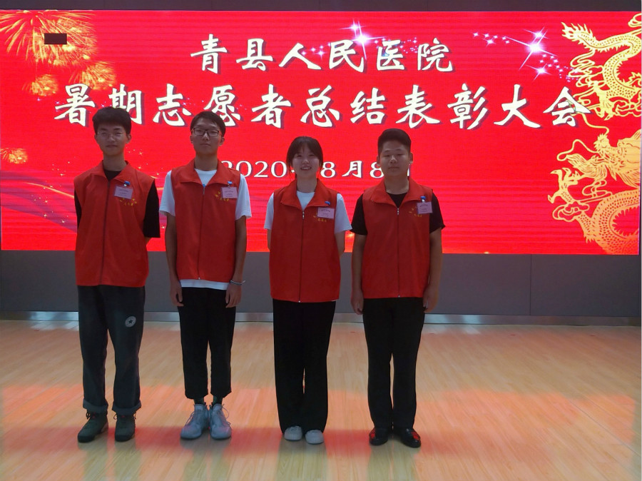 经过一个学期的网课学习,迎来了暑假,但疫情防控仍不可松懈,利用暑假的时间她再次主请缨,报名参与了河北省青县人民医院的暑期志愿者活动,继续为疫情防控贡献自己的一份力,协助完成医院疫情防控的宣传、门诊导引、征兵体检等工作。在此期间担任了志愿者团队的负责人,组织策划了10余场活动,包括:第二批志愿者上岗培训、暑期志愿者总结表彰大会、医疗知识学习、志愿活动等。在医院的这短短一个月,作为非医员工很荣幸有机会穿上白大褂,一开始自己有点兴奋,没想到自己还能有机会穿白大褂,当她跟带队老师去到门诊大厅门口的时候,有人直接走过来问路,而不是去问路边站着的其他人,那一瞬间她才明白身穿这身白大褂的责任感与使命感!在医院的日子让她收获了很多的感动,同时也体会到了作为医护人员的伟大。这短短一个月的时间,她,见到了医院支援武汉的5名英雄,听他们讲解抗疫的故事;见到了年过五十自己崴脚半个月不休息,怕耽误病人看病而一瘸一拐坚持上班的医生;见到了病人痊愈对着医生连连道谢时留下的激动的泪水…