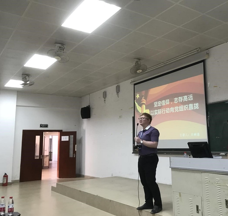 关树基结合中国共产党党史、现状以及发展员工党员的各方面规定,通过幻灯片的模式,分别从党员要求,入党流程、入党动机等方面做了全面介绍。他强调了中国共产党的性质和宗旨,指出入党必要做好为中国人民谋幸福,为中华民族谋复兴的思想准备,必须有全心全意为人民服务,不惜牺牲个人的一切,为实现共产主义奋斗终身的胸襟气魄和奉献精神。