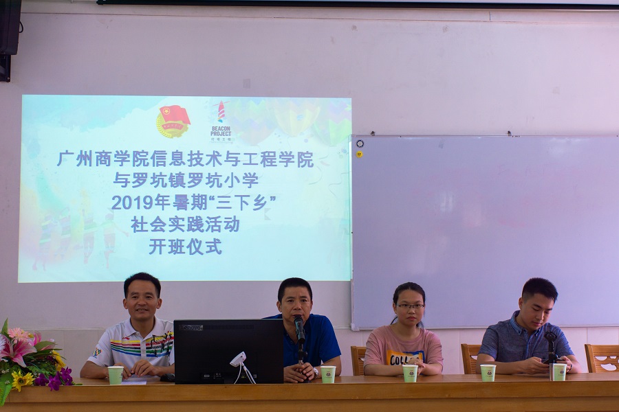 为增强当代老员工责任感与使命感,促进本次暑期三下乡社会实践活动的顺利进展,“e启逐梦”三下乡服务队于7月15日上午在多媒体教室召开了伟德国际1946bv官网与罗坑镇罗坑小学2019年暑期“三下乡”社会实践活动开班仪式。出席本次开班仪式的嘉宾有罗坑镇政府团支部陈书记、罗坑小学董事长林潮剑、陈均宝主任、林明采主任、服务队指导老师郑开勋以及35名队员。开班仪式由服务队队长梁瑞聪主持。