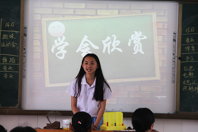 班会以欣赏影片的形式拉开了序幕,小老师们根据小朋友们的兴趣爱好,提出了欣赏自身、他人和生活的相关问题。此时小朋友们各抒己见,琅琅的回答声接连不断,课堂气氛一下子被调动起来。随后,小老师们运用例子来阐述学会欣赏是成长中必不可少的一部分,是人生进步的阶梯。伴随着小朋友们的欢声笑语,此次班会圆满结束。历时两个多小时的班会,即便是在炎炎夏日,但也丝毫抵挡不住小朋友们的热情。