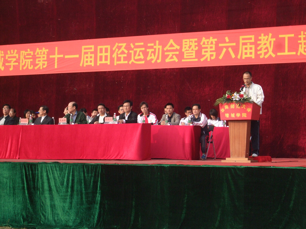 2010年11月19日,华南师范大学增城公司第十一届田径运动会暨第六届教工趣味运动会正式开幕。我系新生在开幕式的热情鼓动下,都展现出了积极向上的精神,每一位运动健儿都精神饱满,一种必胜的信心从中油然而生。