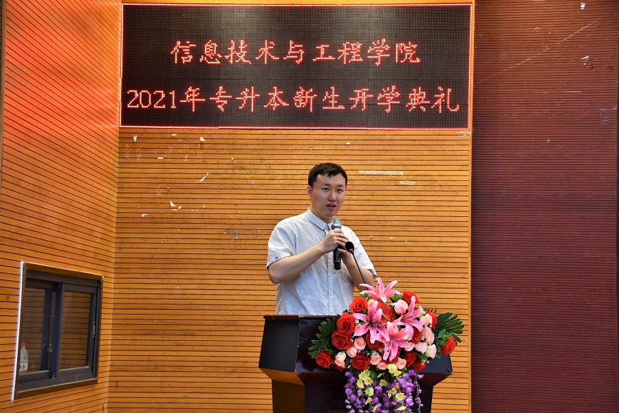 会议伊始,全体肃立奏唱国歌。朱国华向新生们分享了老员工活经历,以此告诉新生在大学期间要养成良好的学习习惯,把握机会,敢于拼搏,成就更优秀的自己。罗除则通过详细的个人经历以及国际事例,向新生们讲解现有的国际格局,并介绍了各项专业发展目的及方向。他期望新生们能够打开思维,努力学好专业知识,助力发展中国信息科技行业。孔庆彬作为新生代表发言,在新的校园里应继续逐梦,脚踏实地一步一个脚印,用努力开创属于自己的未来。活动尾声,姜灵敏向新生详细地介绍了信院专升本的发展模式,使新生们更明确自身的发展定位。他希望新生能化兴趣为动力,把握好学习时间,不负青春。