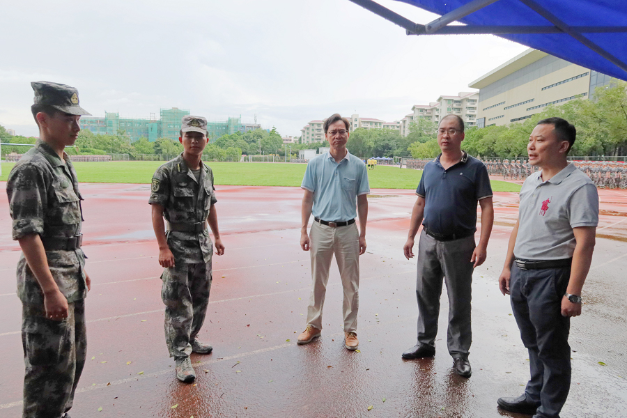 领导们指出,今年军训天气阴晴不定,教官们需要准备好不同天气的应对措施,确保员工们有序地离开训练场地,要保证员工在身体健康的状态下进行训练,此外,员工在训练时需多加注意路面湿滑,防止摔倒,在下雨时要听从教官指挥离开场地。领导们还对于当天身体不适需在大本营休息的员工进行关心与指导,他们提醒员工在下雨天气时不要坐在地上休息,要向教官或助导们拿凳子进行休息,以免身体弄湿。在领导们的关心下,员工们斗志昂扬,并对领导的问候表示由衷的感谢。