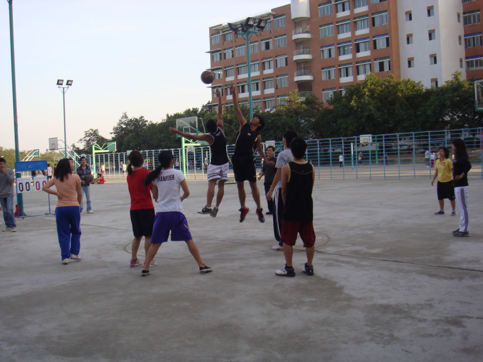 通过这场师生篮球友谊赛,增进了师生之间的感情,促进了师生之间的沟通,加快了师生之间的了解。