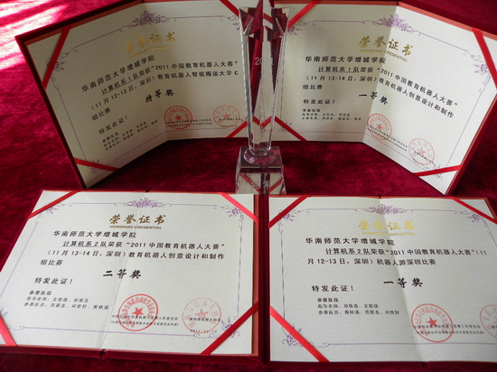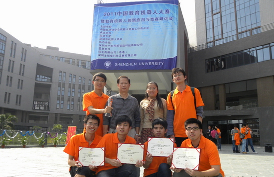 11月12-13日,由中国自动化学会机器人竞赛工作委员会主办的“2011中国教育机器人大赛”在深圳大学举行。计算机系08级员工陈德敢、谢钰铭、曾炜、范碧龙、刘世轩和黄林涌6位同学组成的两个参赛队,在比赛中获得了一个特等奖,二个一等奖和一个二等奖的可喜成绩。