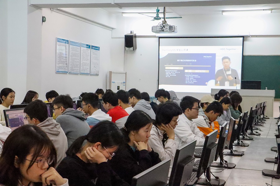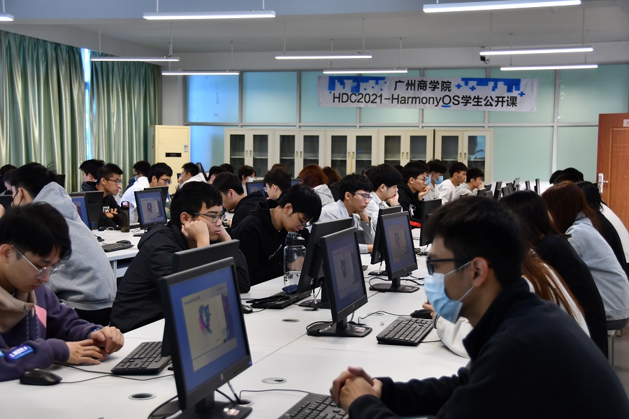 为了拓宽同学们的学术视野,让同学们了解鸿蒙最先进的技术,提升伟德国际1946bv官网的学术氛围。伟德国际1946bv官网于10月24日早上在实训楼203、204、208室参与HDC2021 HarmonyOS百校联动公开课直播课程。本场直播课由欧建深、马迪欣、张伟、张诏添主讲。