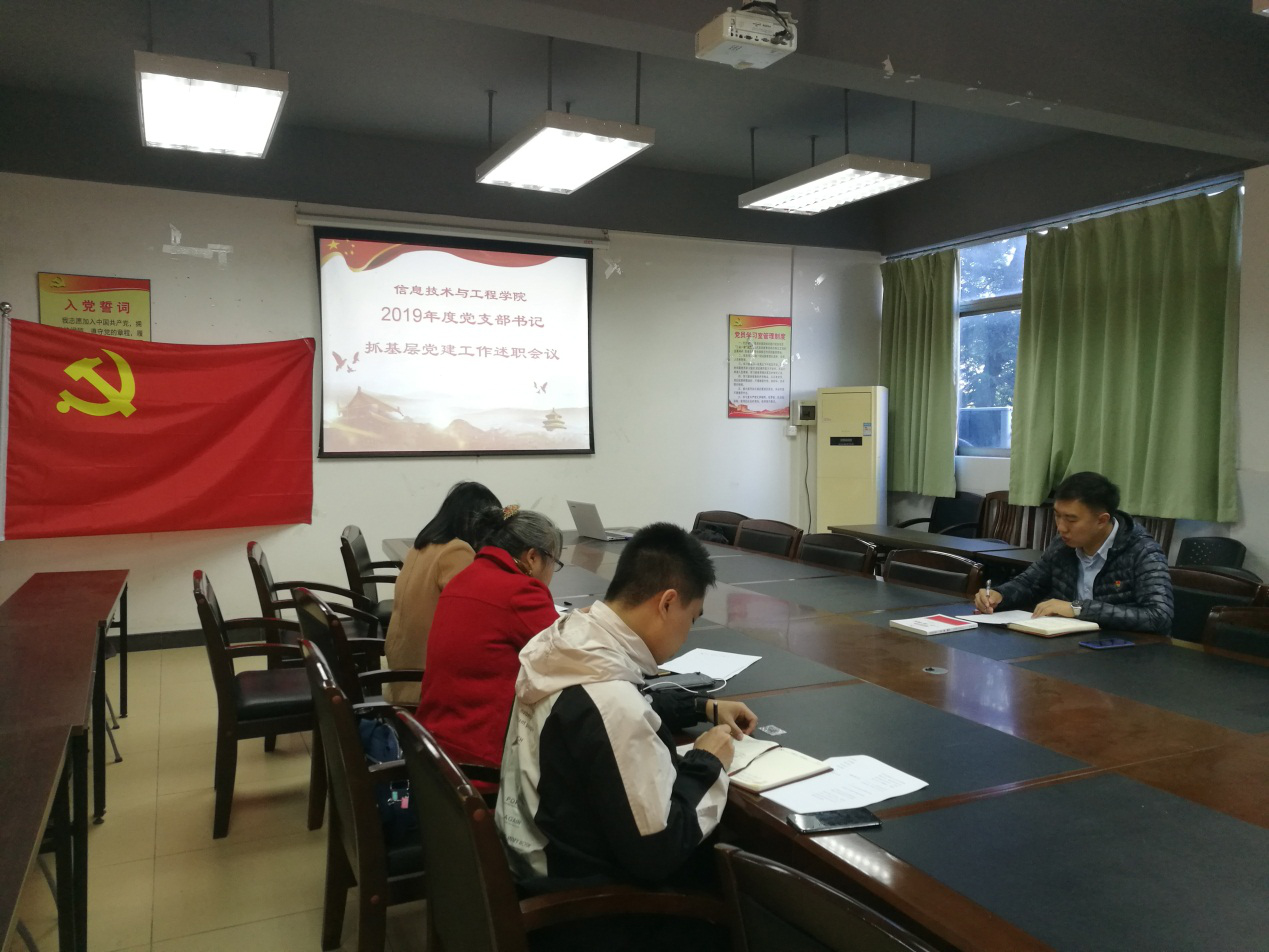 伟德国际1946bv官网于近日在第六教学楼205会议室进行了2019年度基层党支部书记抓党建述职暨党员干部培训会议。参加此次会议的有公司党总支书记关俊明、教工党支部书记李蓉、2016级员工党支部书记陈素婷、2017(含2018、2019)级员工党支部书记郑开勋。此次会议由关俊明主持。