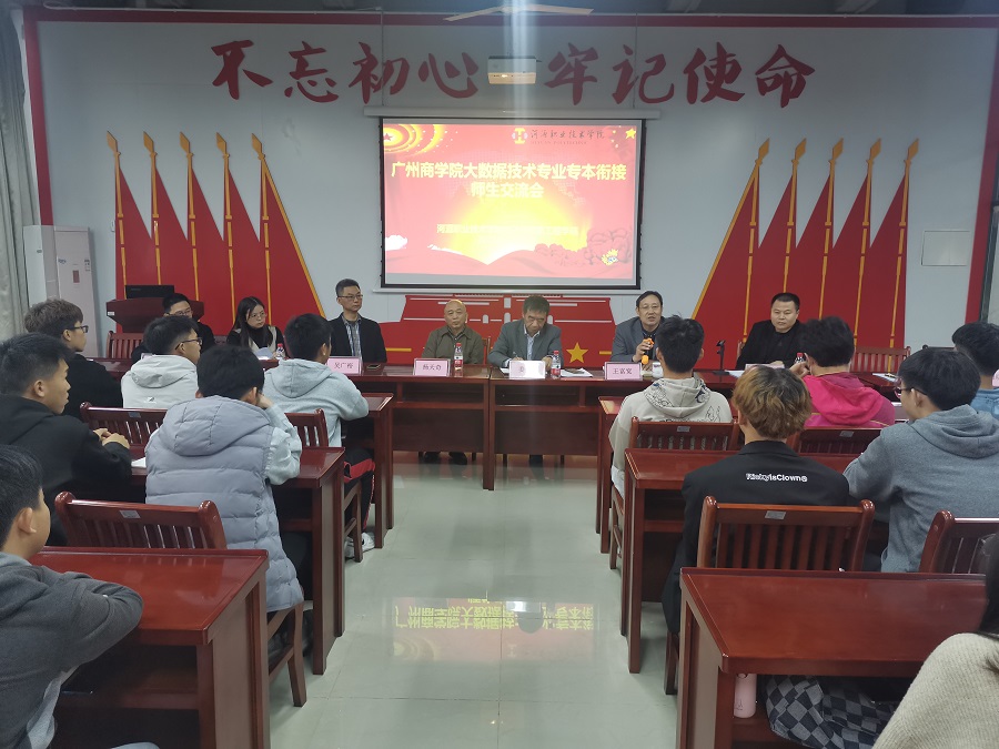 王富宽介绍了河职院的建校历史、电子与信息工程公司的基本情况、公司的招生情况和各项技能大赛的国家级获奖情况。周永福介绍了电信公司的电子和计算机两大专业群各5个专业的大类招生情况、大数据技术专业的招生与就业状况和校企合作培养的学徒制。姜灵敏介绍了建校历史、转设时间、公司现有招生专业、规模和专业建设情况,从公司由教学型向教学科研型转向、硕士点申报、高级人才引进情况和公司地理位置优势等方面描述公司的发展前景。双方深入研讨了三二分段专升本的人才培养方案、转段考核方案等内容,同时探讨两校在其他专业进行分段合作的可行性以及紧密合作的其他方式。