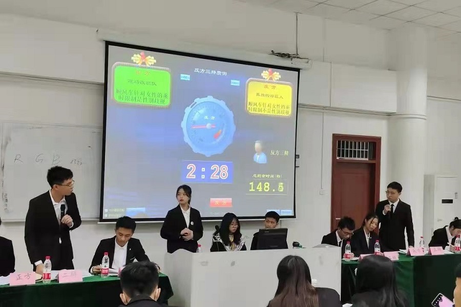本次辩论赛共分为开篇立论、攻辩、攻辩小结、自由辩论、总结陈词五个环节。比赛伊始,正方代表队陈述的观点是“顺风车针对女性的乘时限制是性别歧视”,反方代表队就“顺风车针对女性的乘时限制不是性别歧视”展开论述。在随后的攻辩环节中,双方辩手引经据典、互不相让,他们精彩的对决让现场气氛迅速升温。在最精彩的自由辩论环节中,台下师生随着正反双方的唇枪舌剑而紧张起来,这使整个比赛氛围达到高潮阶段。随后,比赛进入总结陈词环节,正反双方辩手清晰的思路和巧妙的陈词给观众留下了深刻印象。在短暂而精彩的观众提问环节中,正反双方辩手们在面对观众们提出的问题时,他们冷静沉着地运用充足的理论知识储备以及明晰的解答思路,完美地解答了各个问题。精彩的辩论结束后,由19级伟德国际1946bv官网辩论队队长陈媚娜对参赛选手们的表现进行点评。她在肯定双方辩手的精彩表现的同时,也指出了本次辩论赛中出现的问题,并提出了相关改进的措施。最后,经过紧张又激烈的角逐后,本次比赛反方代表队的出色表现获得胜利告终,反方二辩廖嘉雯以及正方三辩张志鹏获得最佳辩手。