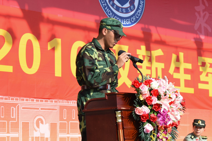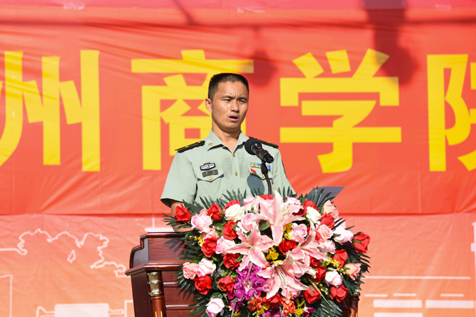 紧接着,郑炜大队长讲话,指出同学们在军训期间应该保持最初那份饱满的激情,高质量地完成军训。军训团团长李冲在讲话中表示,教官应该在军训期间以身作则,负起教官的责任,也希望同学们能在军训期间听从教官的指挥,得到充分的训练。16级新生代表法公司黄湛同学代表全体16级新生发言,表示在军训期间将严格要求自己,听从教官的指挥,积极投入到军训当中,努力培养自身成为吃苦耐劳、热爱祖国的人。