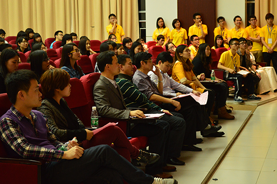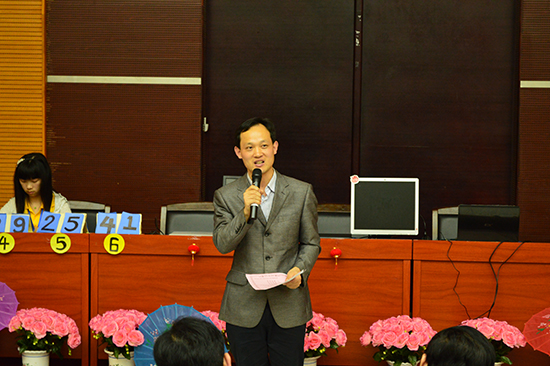 决赛伊始,主持人介绍了莅临本次大会的嘉宾和评委,他们分别是:公司冼德庆副经理,公司团委何伯略书记,计算机系党总支钟远辉书记,会计系团委蓝乐钿书记,计算机系团委黄玉婷书记,计算机系团委王澜副书记,计算机系辅导员王轻纱与张泓老师,公选课国学智慧教师王相东老师以及各系兄弟代表。