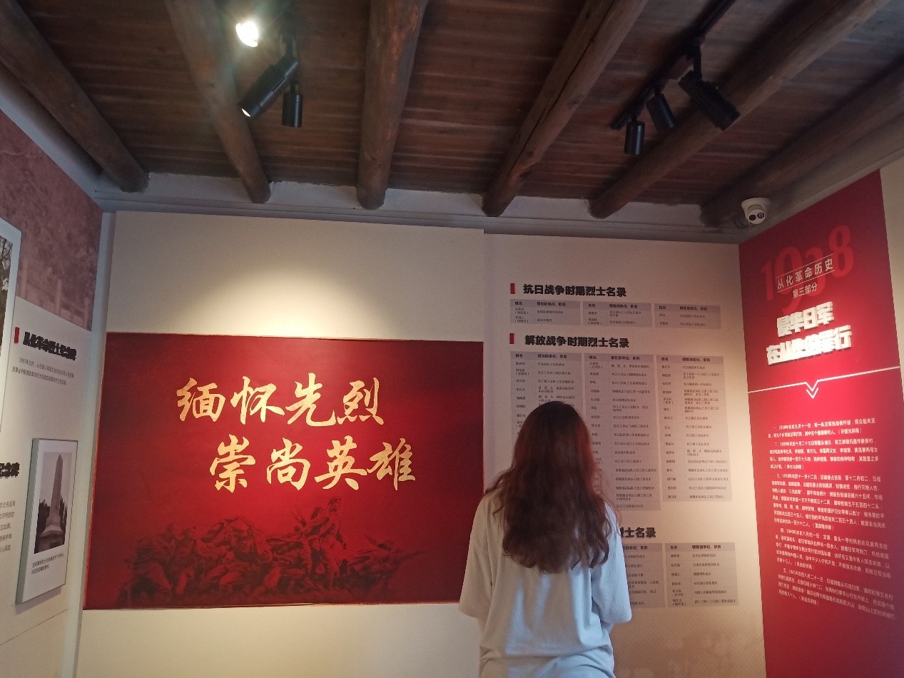 吕田镇位于广州市从化区东北部,是广州市北部唯一的革命老区镇,也是抗日战争时期粤北会战的重要战场,红色旧址星罗密布。其中吕田镇三村村被评划为抗日游击区,莲麻村黄沙坑被评划为抗日根据地。实践团队员们沿着一条布满中国共产党革命历史的墙绘长廊走进了三村村,穿过长廊,团队来到了革命遗址——白石嘴胡氏公屋从北第一党支部旧址。这里的呈现,模拟着当年党支部举办党训班,先辈们带领当地党员群众进行党训课的场景。在党的领导下,三村村留下了可歌可泣的革命斗争动人事迹。