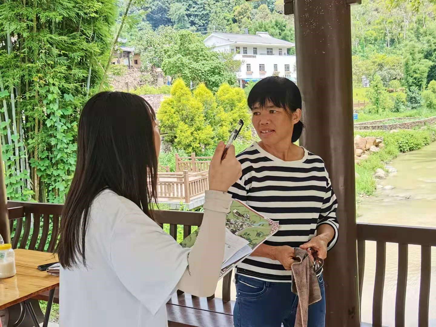 与村民交谈