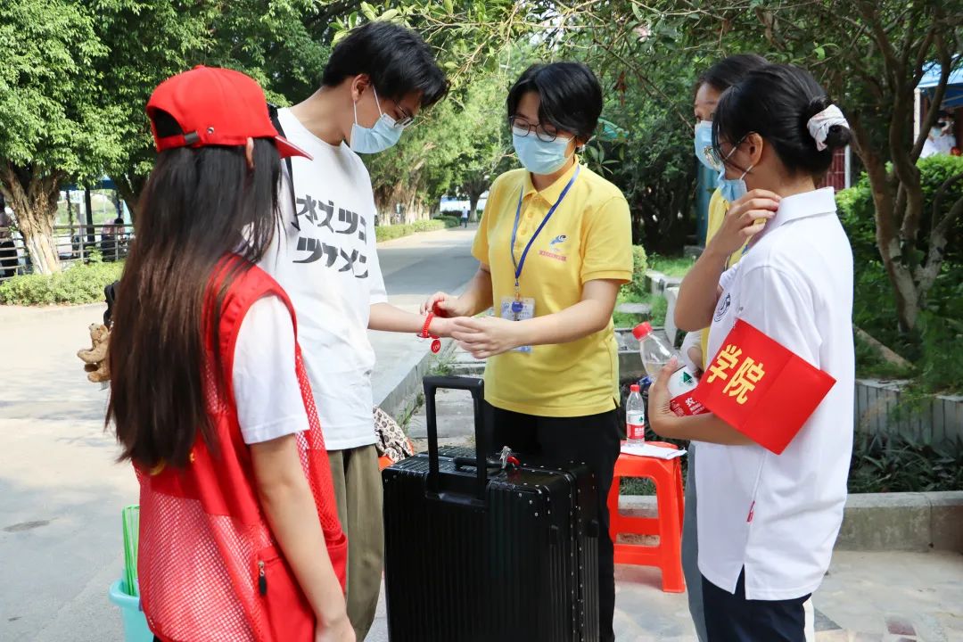 工作人员帮助新生搬运行李