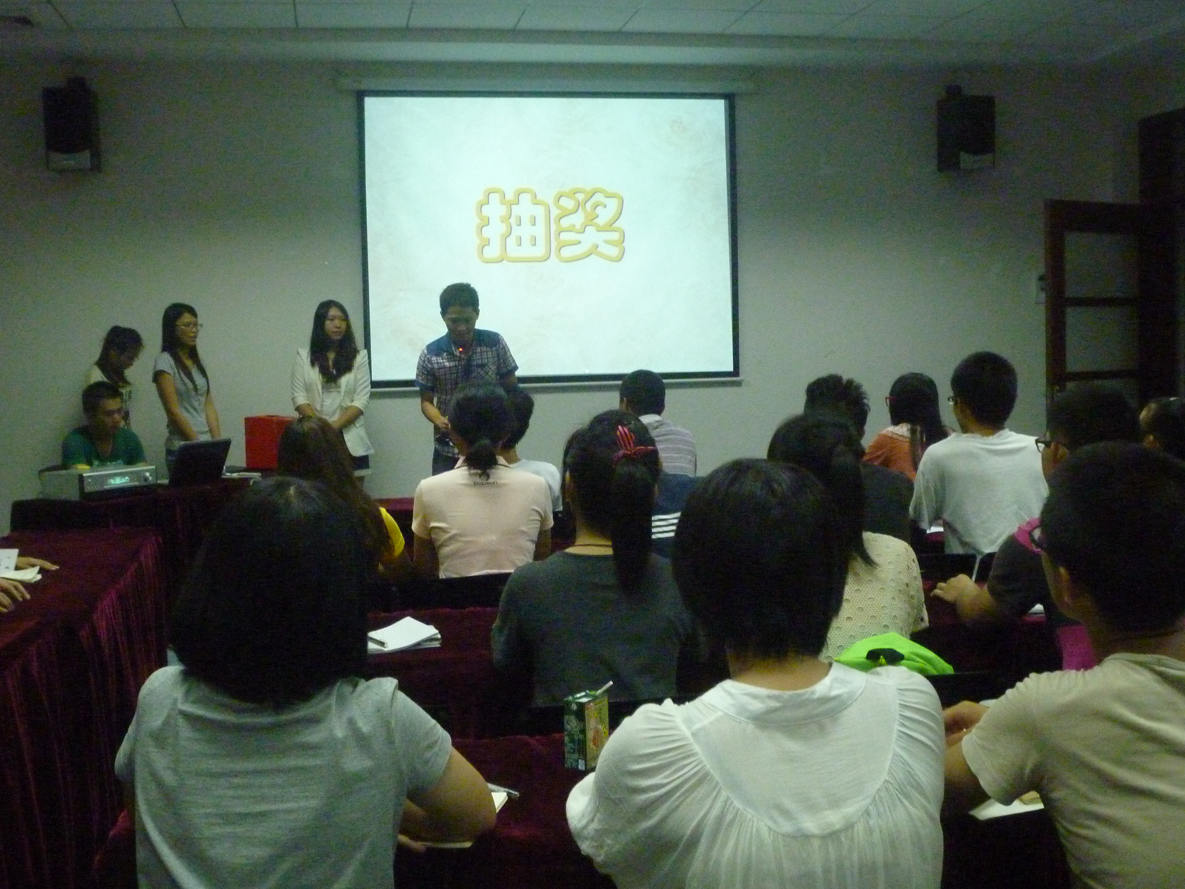 最激动人心的,莫过于抽奖环节了,这一环节中钟远辉书记、黄玉婷老师和组织部部长高立文同学分别为在场的成员们抽取奖罚,欢笑声、掌声连连,各种交流使会场的气氛显得其乐融融。