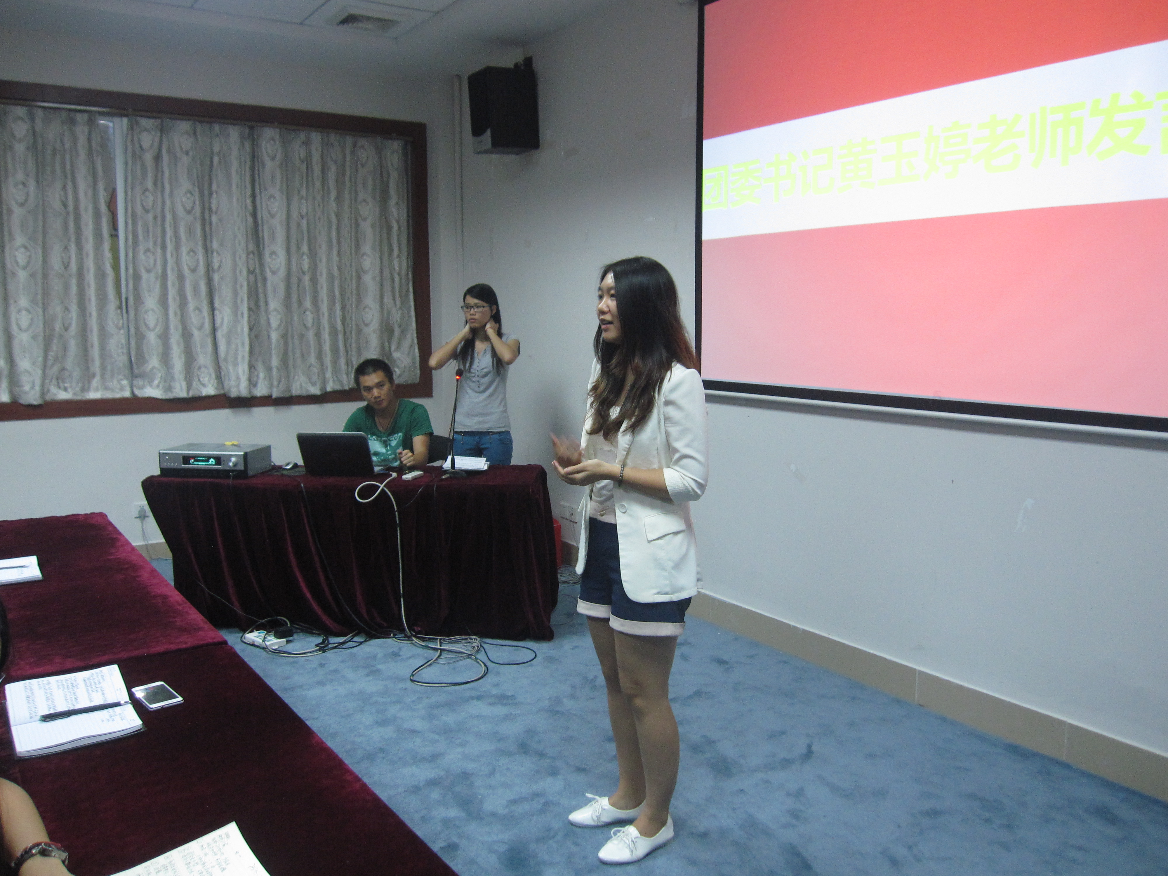 见面会的最后环节,黄玉婷老师发表了讲话,告诫在场的成员们对于外来的各种言传要辩证看待;作为团委的一名干部干事,凡事要学会分析;同时希望在座的同学们都能在团委这个组织里面有所收获,并且丰富自己的阅历。