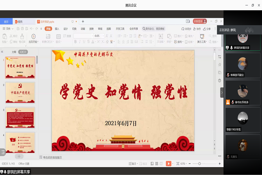 会议伊始,陈素婷与员工分享新中国史,系统地阐述了新中国诞生72年以来的风雨历程,讲解了中国发展过程中对于制度的探索与创新的艰辛历程,同时教育员工历史是最好的教科书,让国史之光照亮未来,以史为鉴、奋发向前,是当代青年实现中华民族伟大复兴的中国梦的重要使命。随后,廖琪跟员工分享“学党史,知党情,强党性”主题教育,通过建党百年讲述党史发展的三个历程:新民主主义革命时期、社会主义革命和建设时期、改革开放和社会主义现代化建设新时期,阐明了中国共产党是中国特色社会主义事业的坚强领导核心,并号召员工树立正确历史观,做到知史爱党、知史爱国,不断提升“四史”学习教育实效,在新时代发扬党的光荣传统、优良作风,以优异成绩向建党100周年献礼。