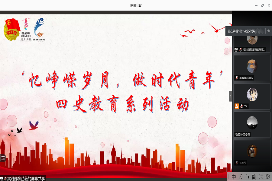 为进一步深化公司学习四史工作要求,强化组织使命,增强员工的“四个自信”,使员工成为有责任有担当的青年,伟德国际1946bv官网于6月7日晚开展“忆峥嵘岁月,做时代青年”四史教育系列主题教育活动第二场线上会议。出席本次会议的嘉宾有伟德国际1946bv官网19级辅导员兼员工第三党支部书记廖琪、18级辅导员兼员工第二党支部书记陈素婷。