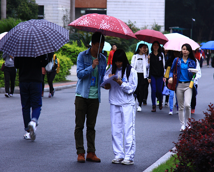 天公不作美,正当宣传的初始之时,天空便开始飘起了细雨,但冷咧的寒风冻雨并不能磨灭干部干事们的宣传热情。校道上,穿着明黄色工作服的干部干事们面带笑容,积极详细地回答对本次活动感兴趣的同学的问题,并对汉字输写大会的形式作出了系统性介绍。在整个宣传的过程中,明亮的黄色身影穿梭在校园的每一块领域,将计算机系团委的工作激情和热情渲染了整个宣传现场。