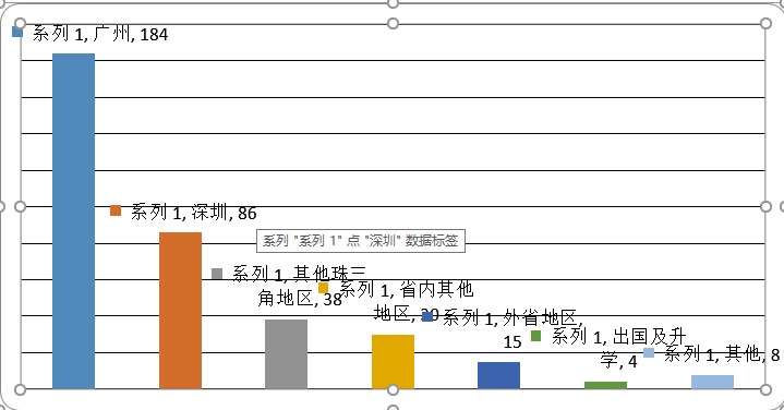 制作图表(分类如下:广州、深圳、除广州深圳外其他珠三角地区,省内其他地区,外省,出国及升学,其他)