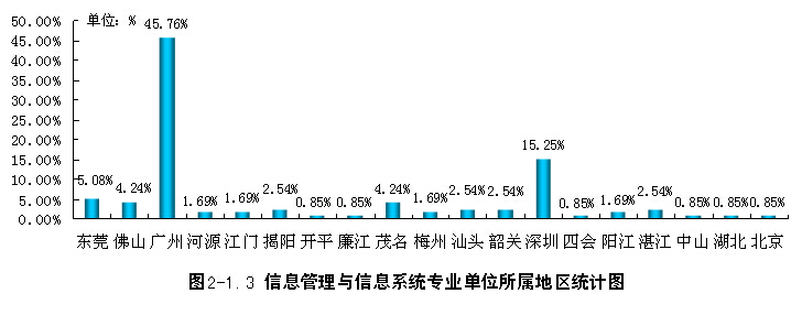 在广州地区就业的有54人,占45.76%,深圳18人,占15.25%,东莞6人5.08%,外省2人,共占1.7%。